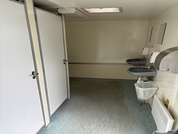 Anslutes till befintligt va-nät. El, värme och belysning. Utrustade med tvåldispensers, toalettpappershållare och papperskorgar.